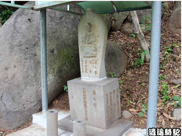 第二十番石佛跟第二十一番石佛一樣福隆山步道-石佛古道 ,同樣被鐵皮屋遮住不受風吹雨打,重森ㄚ被不免沉思,同樣來到這裡的33尊石佛卻有著不同的命運,菩薩都自身難保,怎能期待普渡眾生^^第二十三番石佛已經不見,但願有一天石佛可以回歸原地。到了福隆山步道終點,就是凌雲禪寺-觀音山 後殿,重森ㄚ被在凌雲禪寺後殿前看見第24、17、26、27、28番並列於走道石欄杆前。第24、17座之間,還有一殘座, 刻字已模糊,無法辨識是第幾番觀音菩薩。